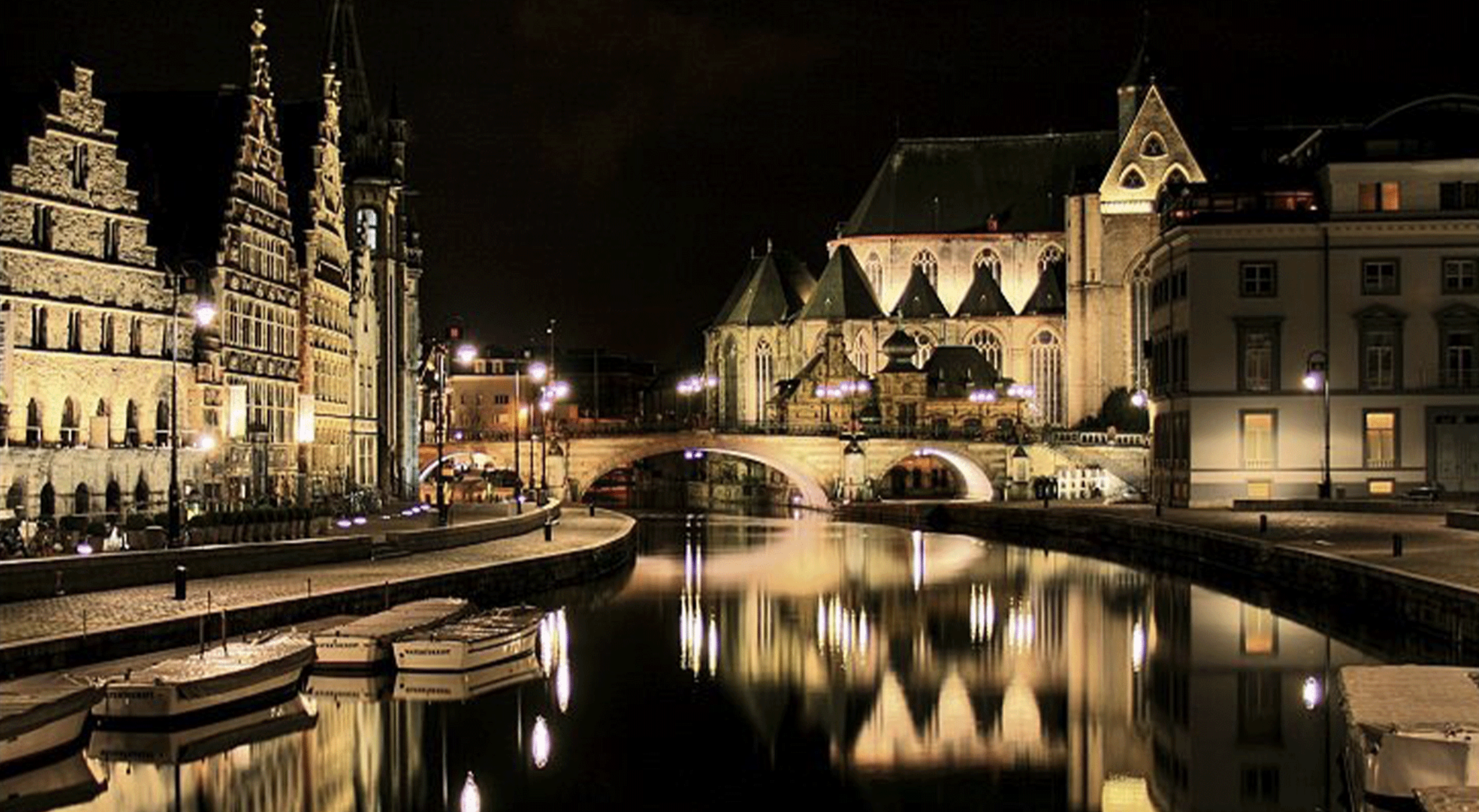 Одним из главных мест для прогулки считается каменный мост Синт-Михилсбрюг в самом центре. Именно отсюда открывается культовый вид сразу на три средневековые башни: Собор Святого Бавона, Церковь Святого Николая и Колокольню Гента. Этот панорамный пейзаж многие считают одним из самых красивых во всей стране.