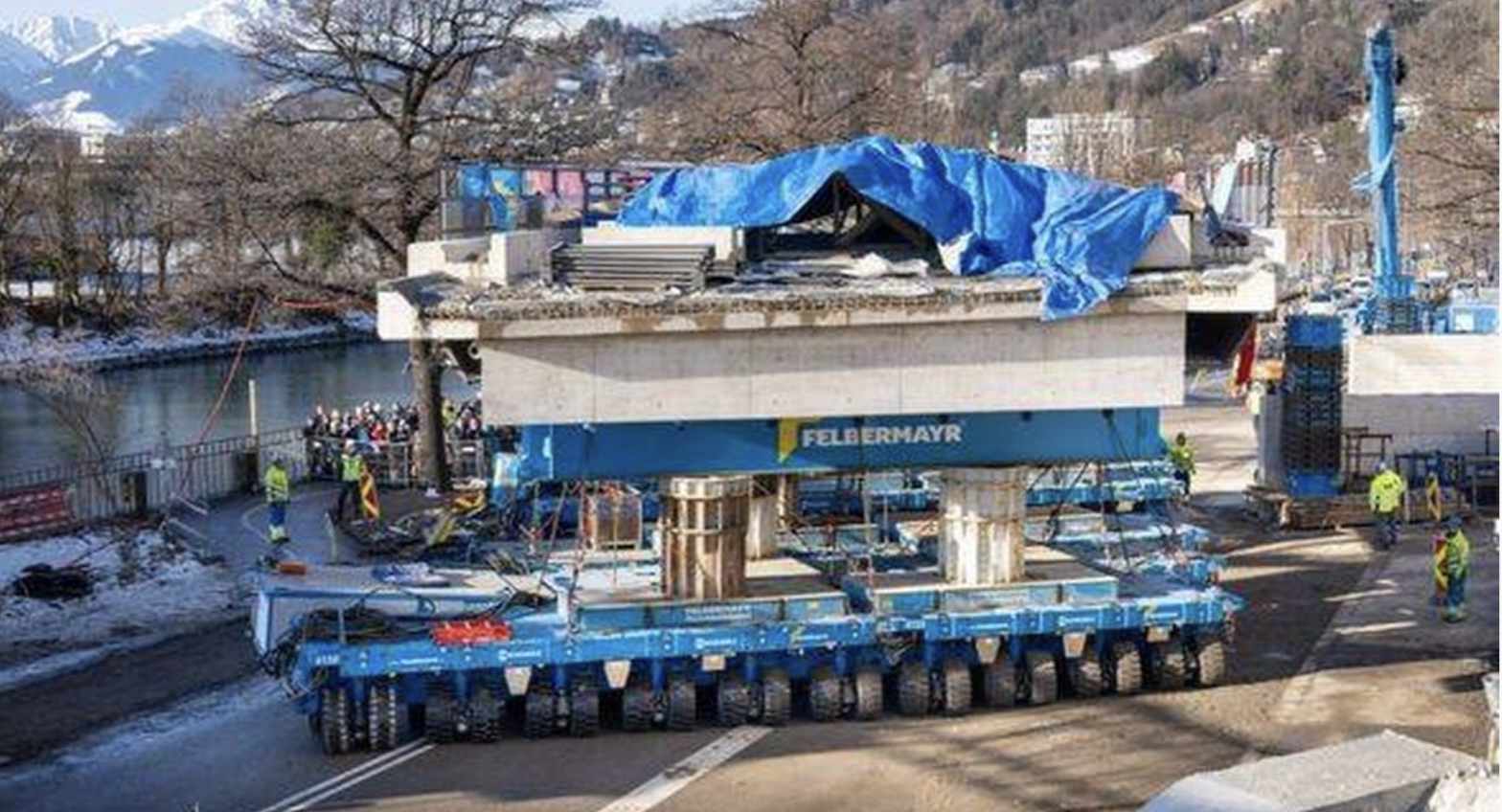 1400-тонный железнодорожный мост переместили через центр Инсбрука без использования кранов
