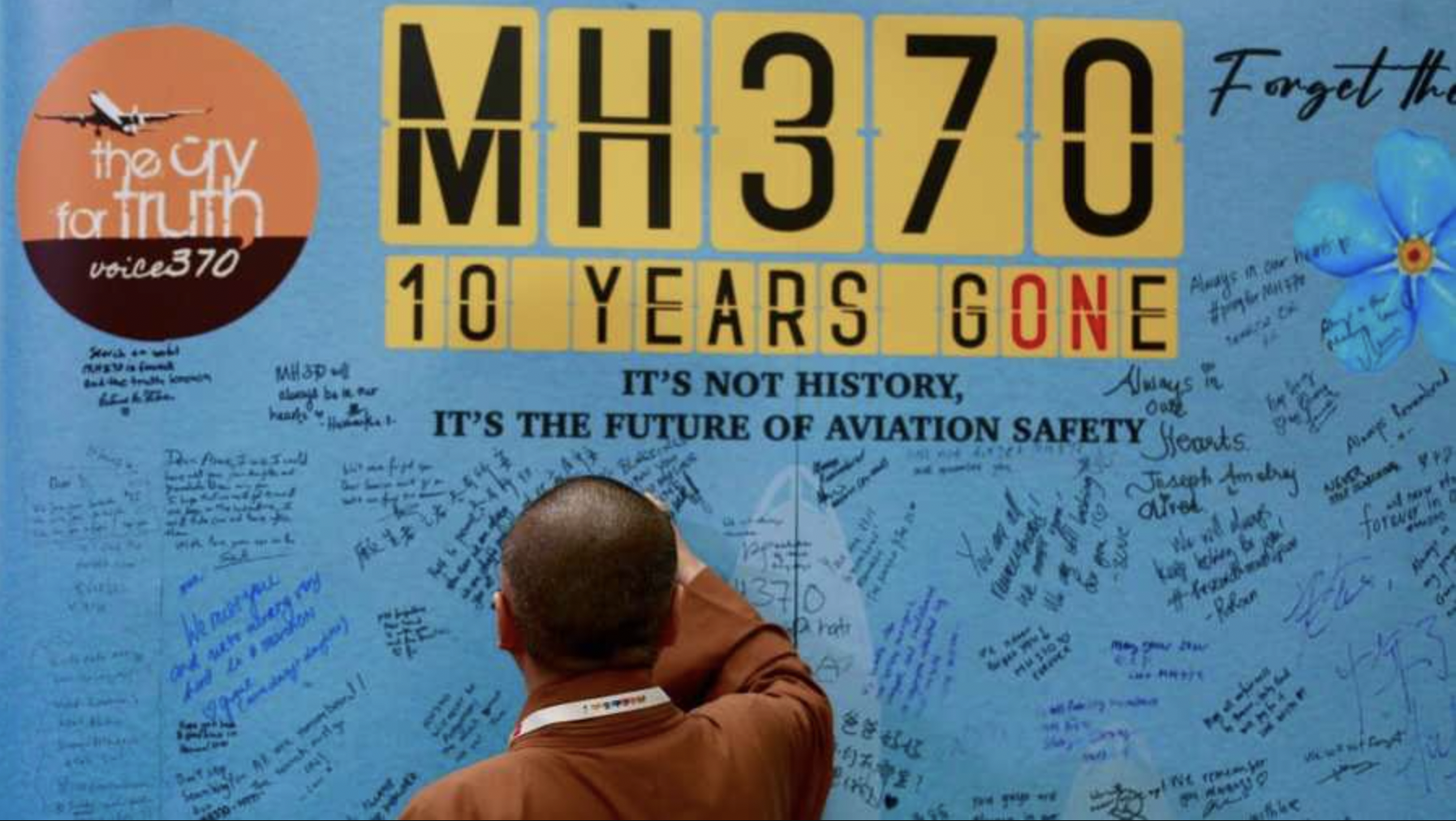 Памятный плакат, посвященный 10-летию исчезновения рейса MH370 авиакомпании Malaysia Airlines