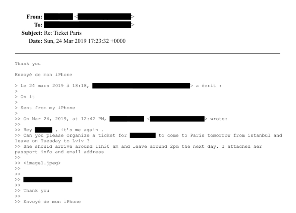 Также упоминается Львов в заказе билетов для некоей женщины, которая должна вылететь в Париж из Стамбула, а после улететь во Львов.