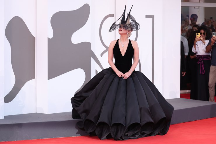 Знаменитость прибыла на первую главную красную дорожку премьеры фильма "Джокер: Безумие на двоих", одетая так, чтобы привлечь внимание. На ней было объемное черное платье с глубоким вырезом и массивной юбкой от Christian Dior Haute Couture без рукавов и бриллианты Tiffany & Co, включая большое ожерелье с подвеской. К ансамблю певица добавила ботильоны от Giuseppe Zanotti и эффектный черный кружевной головной убор Philip Treacy, напоминающий рогатые пики, с кружевными полями, которые эффектно опускались перед ее глазами.