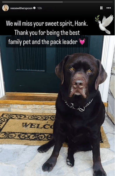 В августе Ава и ее семья оплакивали потерю любимой собаки, которая умерла в возрасте 14 лет. Риз Уизерспун, которая, по слухам, встречается с Оливером Хаарманом, поделилась фотографией шоколадного лабрадора на крыльце своего дома.