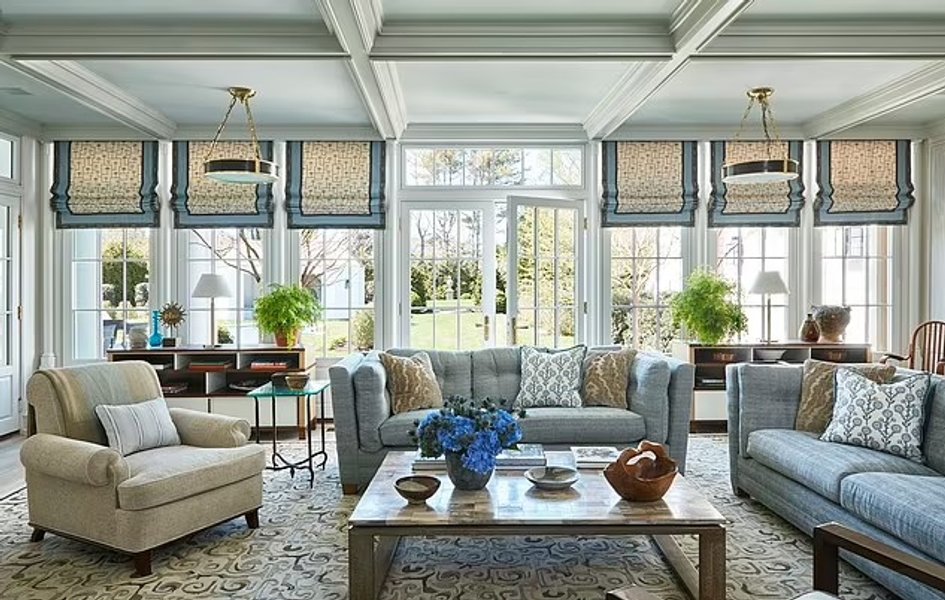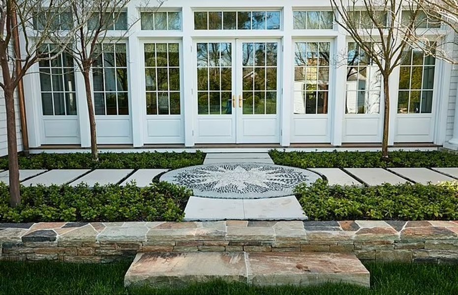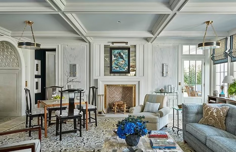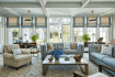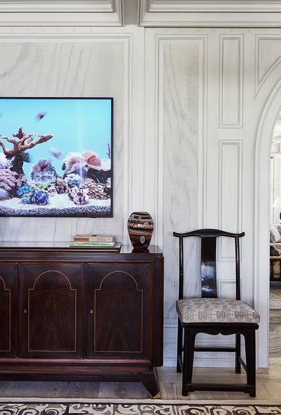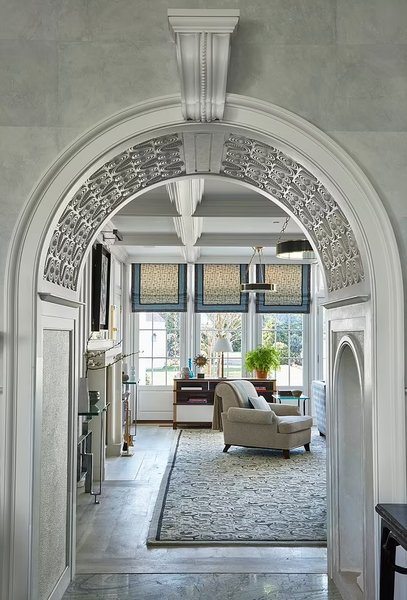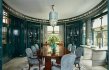 В доме есть большой закрытый вход, который ведет внутрь, представляющий собой двухсветное фойе с прилегающей лестницей и большой комнатой. Кухня оборудована самыми современными удобствами, включая пару морозильников с температурой ниже нуля, плиту Lacanche и скоростные и электрические духовки от Wolf. Обеденная зона дополнена столешницами из мрамора и уголком для завтрака, примыкающим к столовой.