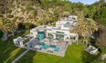 Роскошное поместье в средиземноморском стиле может похвастаться частными садами, панорамными видами на город и большим теннисным кортом, оборудованным баскетбольным кольцом.