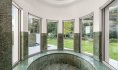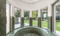 Возможно, одной из самых необычных особенностей дома является его многоуровневая гостевая резиденция и развлекательный павильон, которые соединены с главным домом футуристическим мостом со стальными колоннами. Он проходит над главной подъездной дорогой.