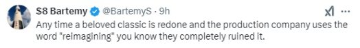 После объявления на X пользователи социальных сетей выразили возмущение и беспокойство, поскольку не хотят, чтобы перезагрузка нивелировала оригинал, а также скепсис в отношении того, что сервис учтет повестку и заменит белых героев темнокожими и представителями сексменьшинств.