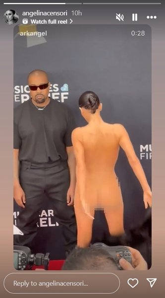 Когда Бьянка предстала обнаженной перед фотографами, Канье с отстраненным видом наблюдал за происходящим, пока пару не попросили на выход, несмотря на то, что Уэст был номинирован.