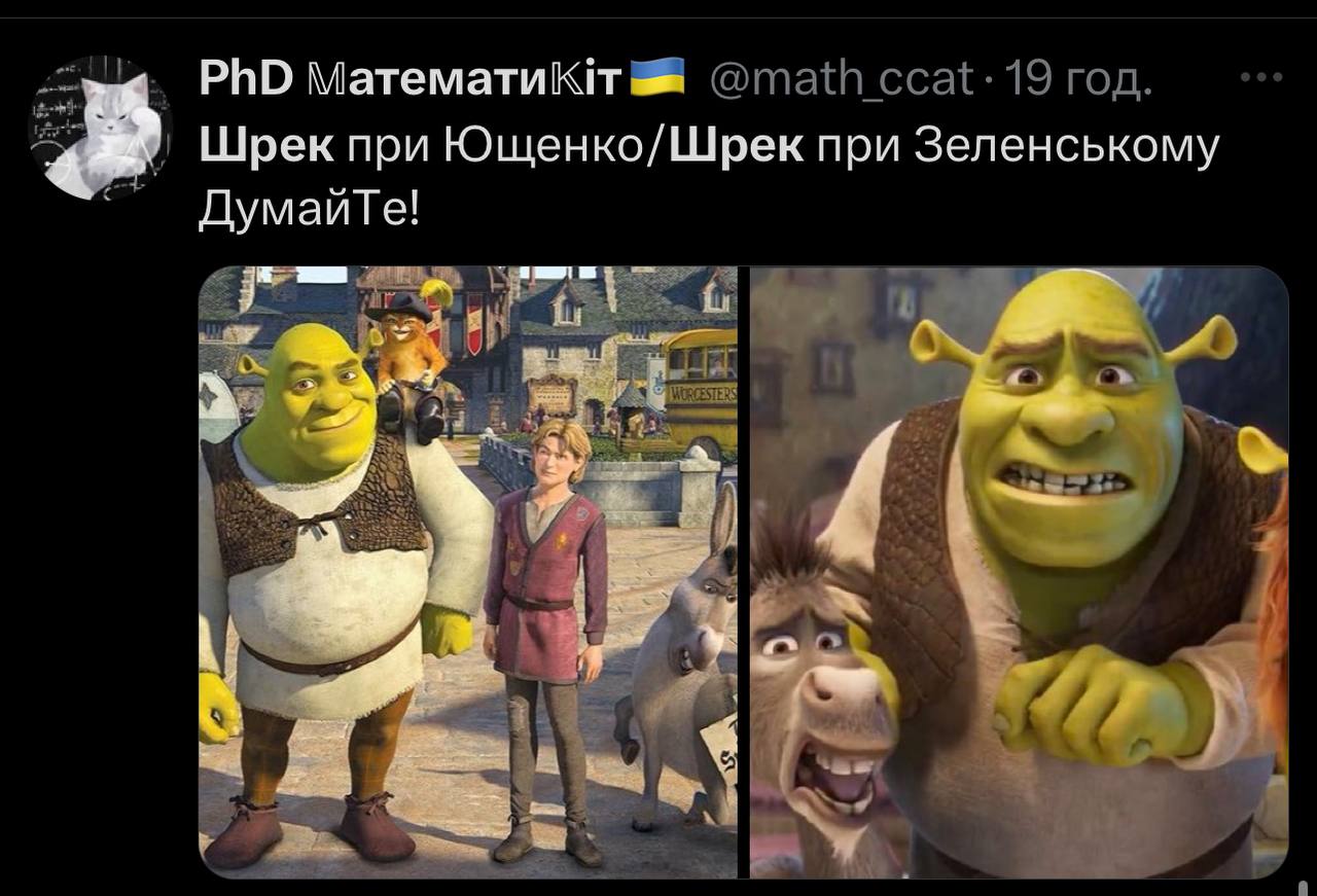 Не обошлось и без шуток. Пользователи сети отметили, что ранее Шрек выходил во время каденции Виктора Ющенко. А огр, которого раскритиковали в сети, за Зеленского.