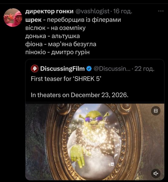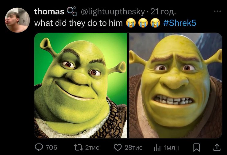 "Теперь это закос на идеализированную супермилую анимацию современного Диснея. Как я говорил ранее, Шрек 5 не должен существовать", — написал фанат франшизы.