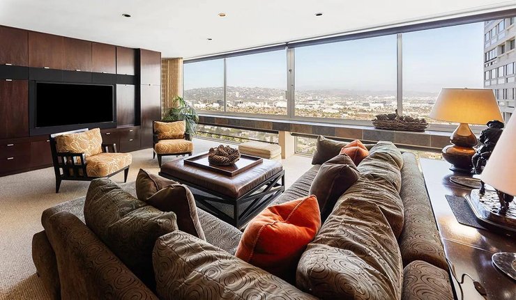 Квартира площадью 245 квадратных метров находится на 23-м этаже в одном из двух зданий, входящих в Century Towers, где жили многие из крупнейших звезд Голливуда, включая Дайану Росс, Берта Ланкастера и других.
