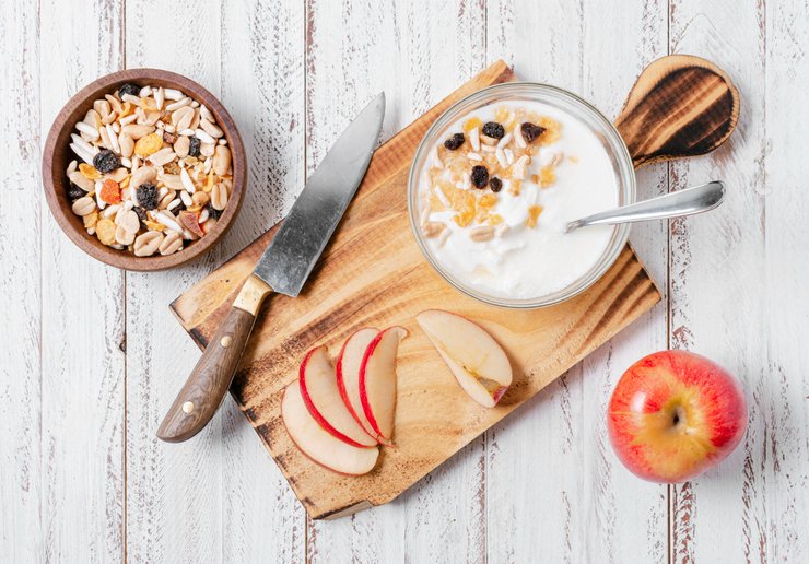 Это лакомство — идеальный выбор, потому что оно сочетает в себе богатый белком йогурт с богатыми питательными веществами начинками, такими как фрукты, орехи и осенние специи, такие как корица и мускатный орех.